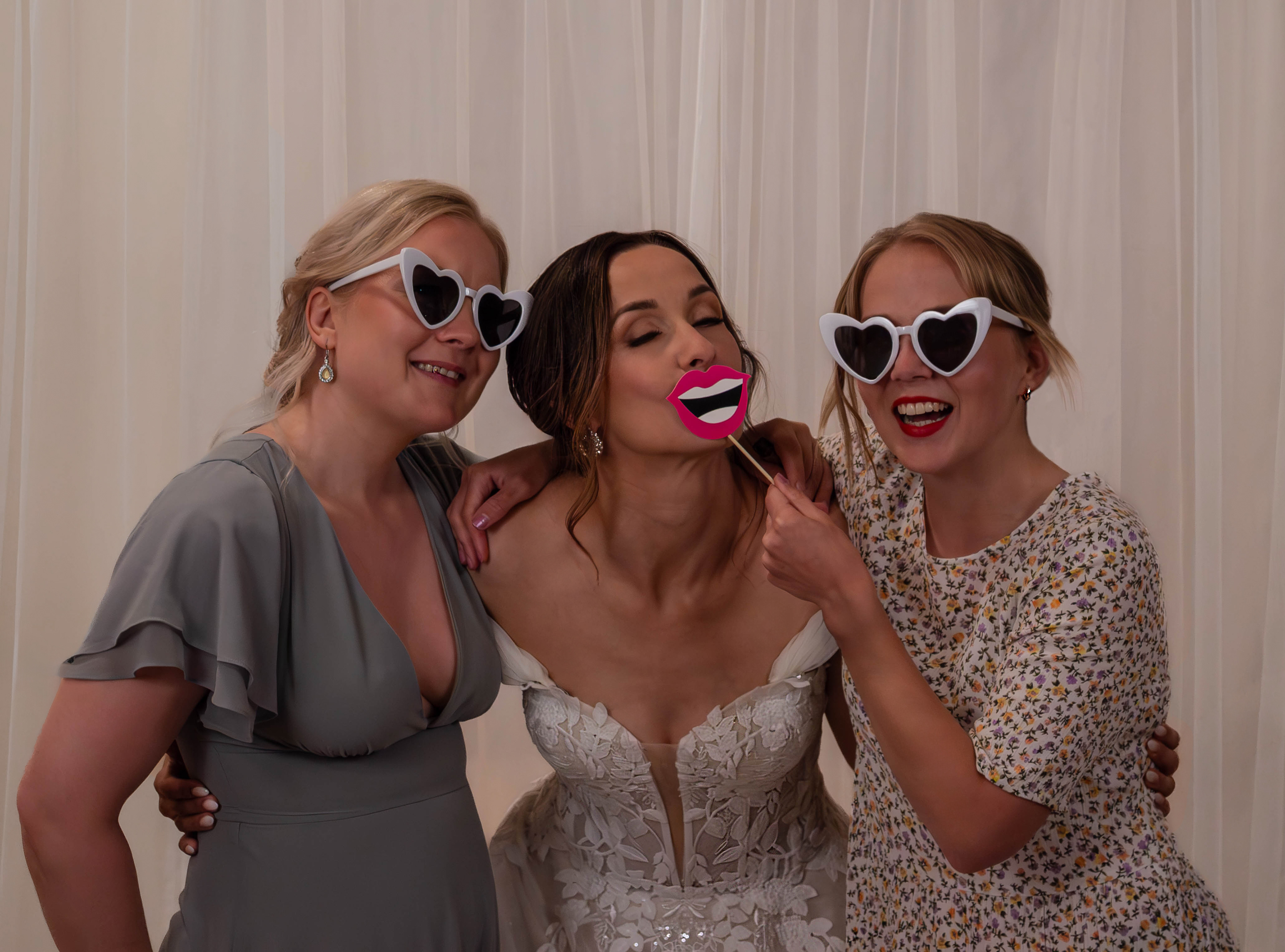 Yksityiskohdat tekevät juhlista erityiset – tämä hääparin luoma kuvausalue rekvisiittoineen oli ihana paikka ikuistaa päivän hetkiä.